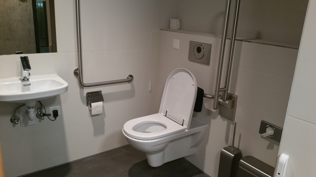 Auf den Decks 1 und 3-7 finden Sie jeweils eine rollstuhlgängige Toilette. Diese lassen sich per Eurokey öffnen. Sollten Sie keinen Eurokey bei sich tragen, können Sie ein Exemplar beim Betriebsteam oder beim Empfang auf Deck 3 ausleihen. Sämtliche Toiletten sind mit einer Notfallklingel und Handläufen ausgestattet.